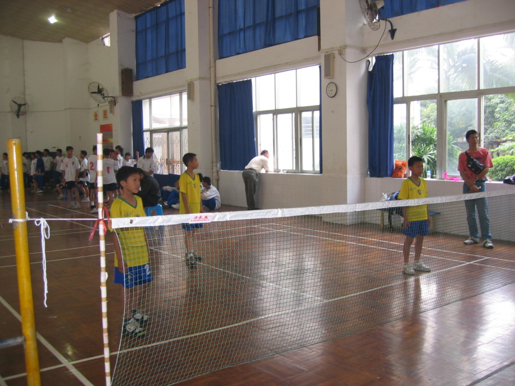 毽球运动走进中小学。图为:中小学生在放学后练习毽球