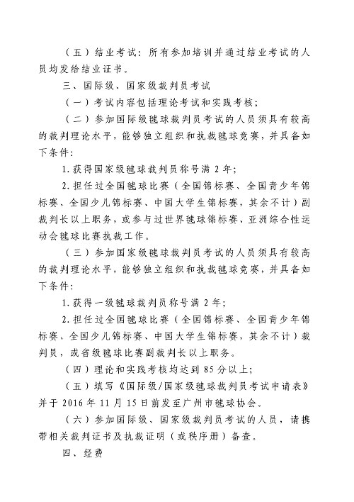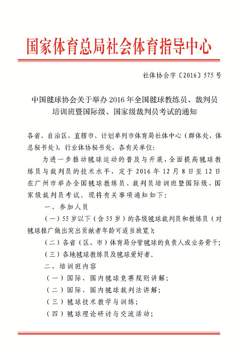 关于举办2016年全国毽球教练员、裁判员培训班暨国际级、国家级裁判员考试的通知