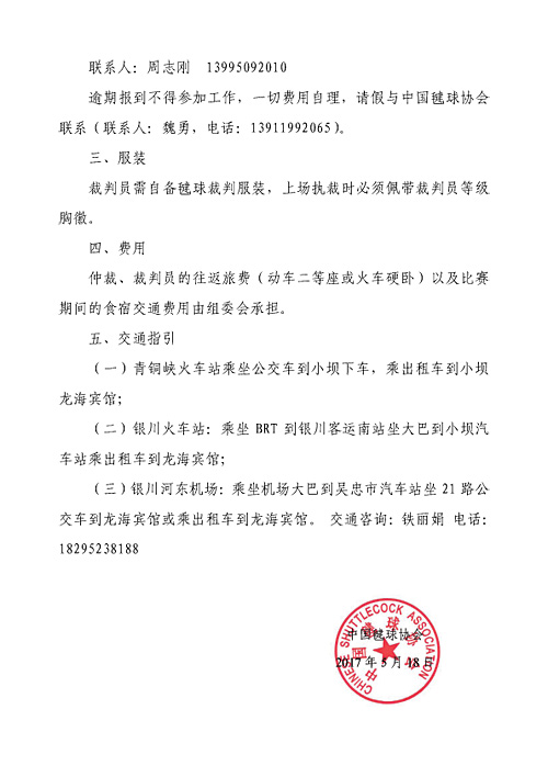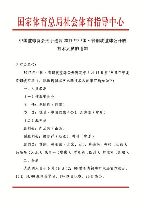 关于选调2017年中国·青铜峡毽球公开赛技术人员的通知
