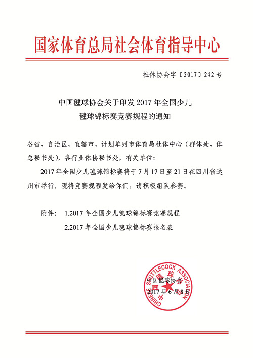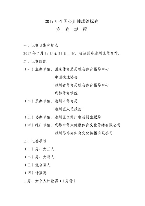 2017年全国少儿毽球锦标赛竞赛规程