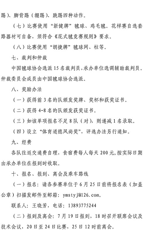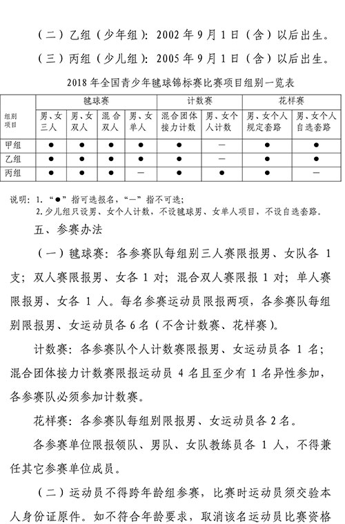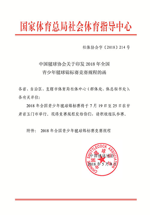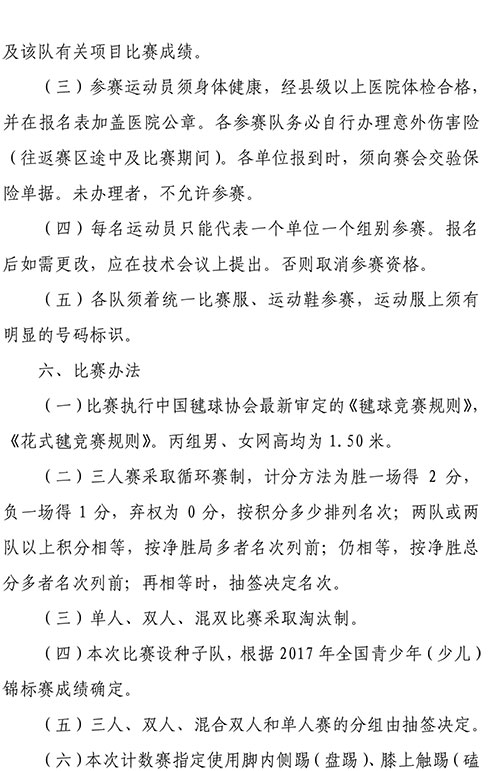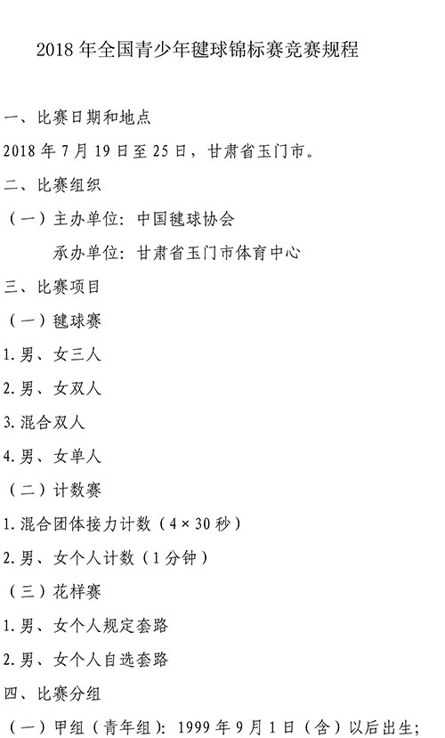 关于印发2018年全国青少年毽球锦标赛竞赛规程的函