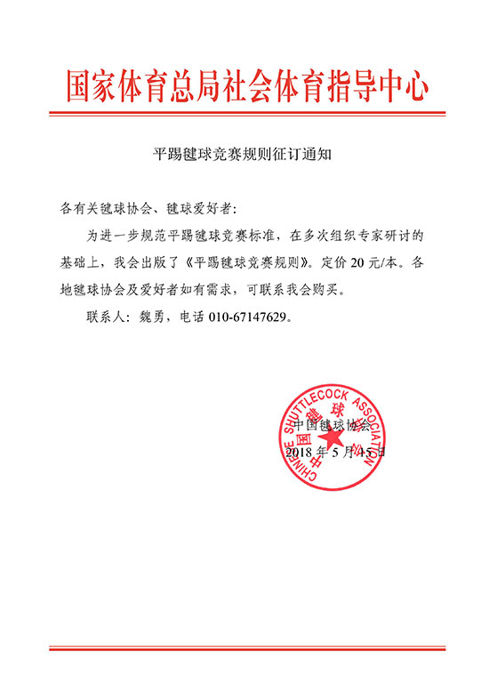 平踢毽球竞赛规则征订通知